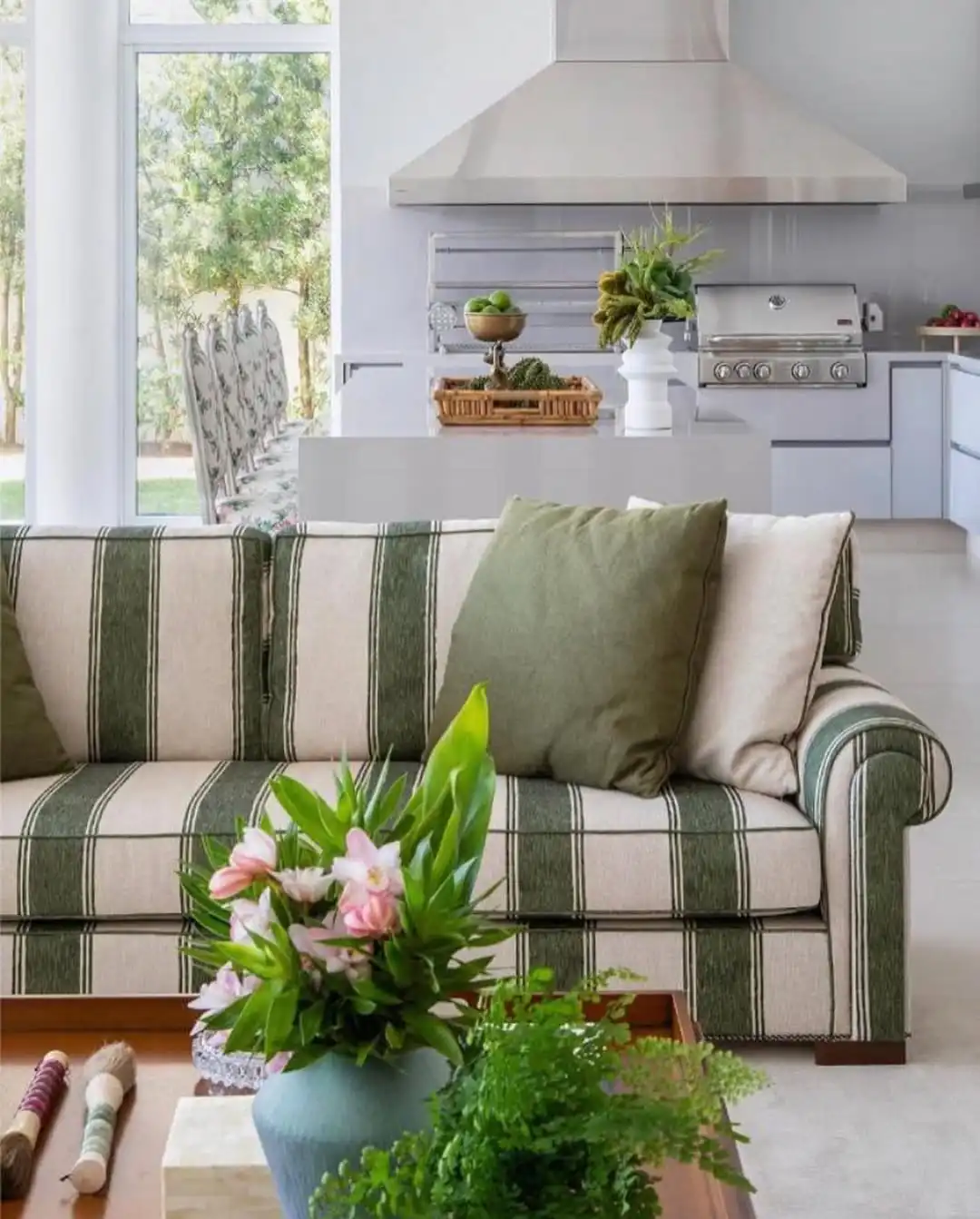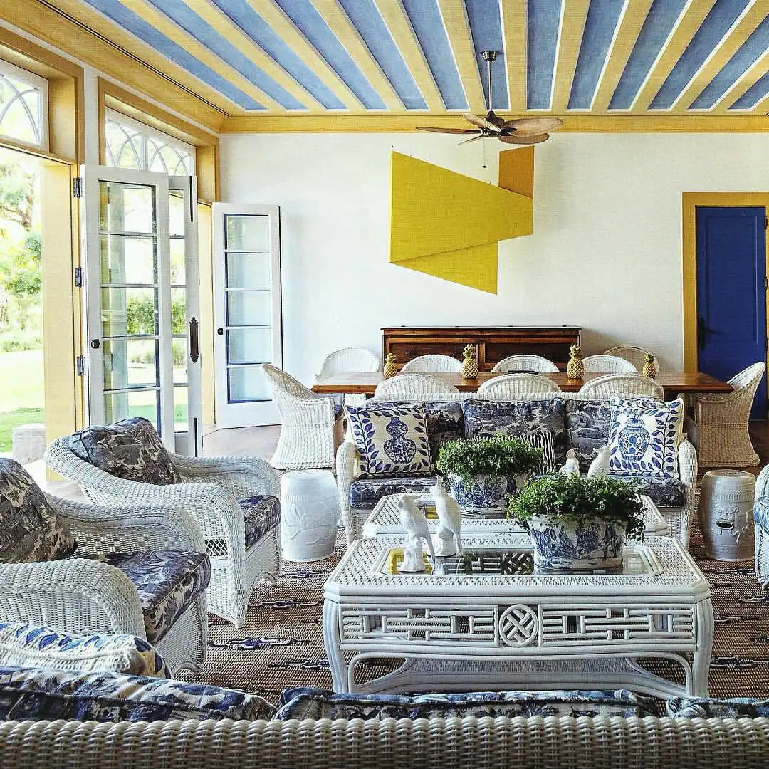 Casa em Trancoso decorada por Sig Bergamin no sofá estampa Exótica da Print’s